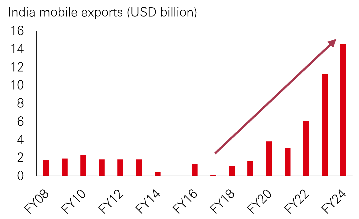 Discretionary spending: India's rising consumer confidence and increasing spending power are propelling growth in various sectors, particularly retail, travel, and luxury goods. As the middle class expands and disposable incomes rise, consumers are more willing to spend on non-essential items and experiences – India’s GDP per capita is expected to reach USD5,000 by 2030, according to Morgan Stanley’s estimates. India has now emerged as the second largest ecommerce market in the world in terms of number of online shoppers.8 It is also now the second largest smart phone market in the world.